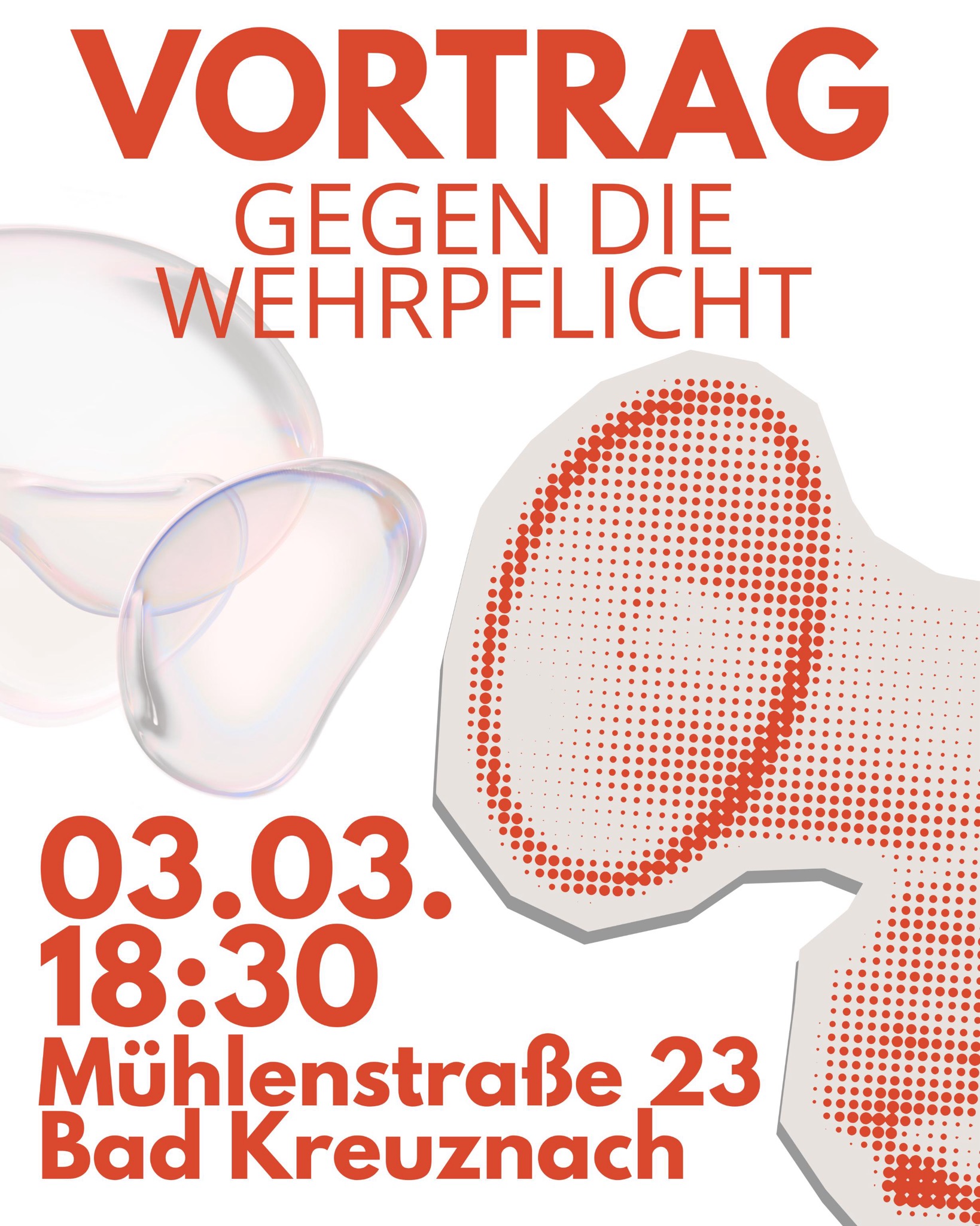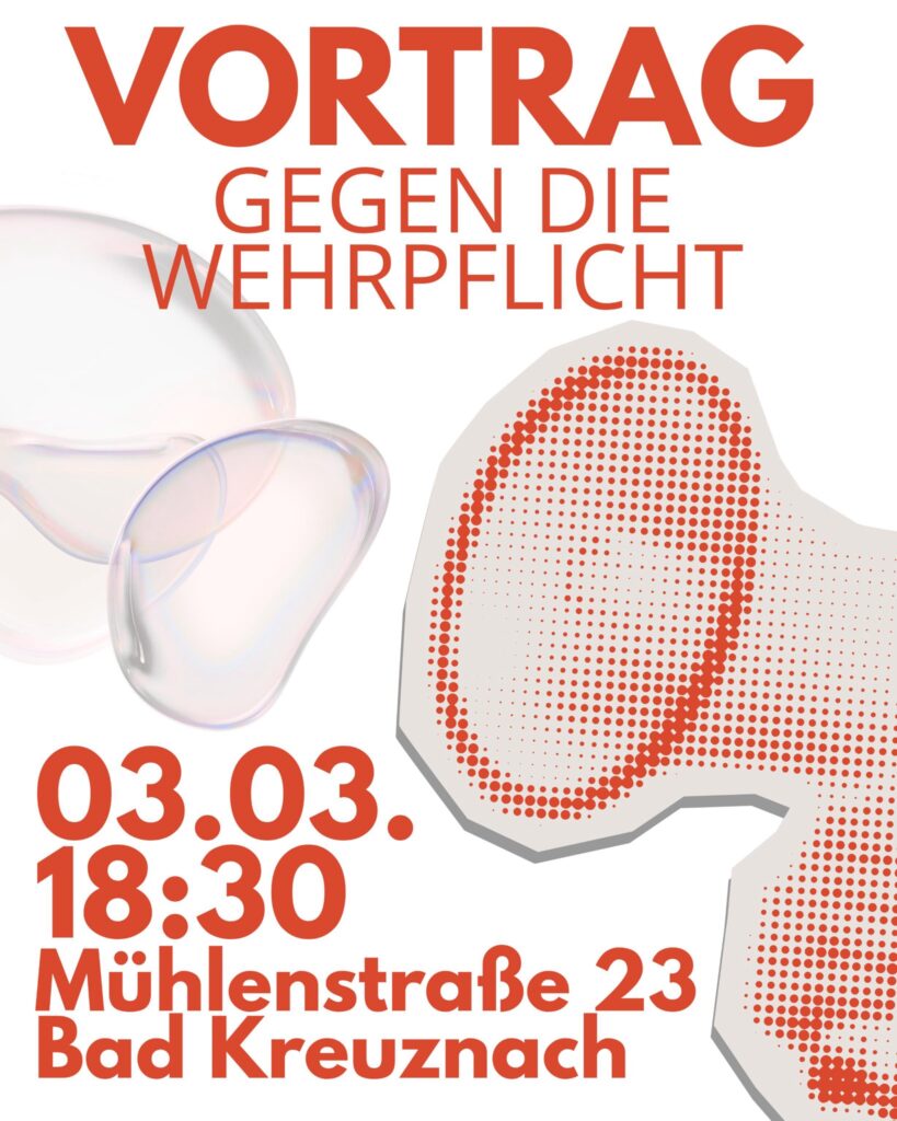 Wir merken, dass die Wiedereinführung der Wehrpflicht viele (junge) Menschen beschäftigt und möchten uns gerne zu den Hintergründen dieser politischen Entscheidung informieren und gemeinsam austauschen. Jürgen Locher wird hierzu einen Vortrag halten und darüber informieren, welche Rechte und Möglichkeiten diejenigen haben, die die Wehrpflicht verweigern möchten.
